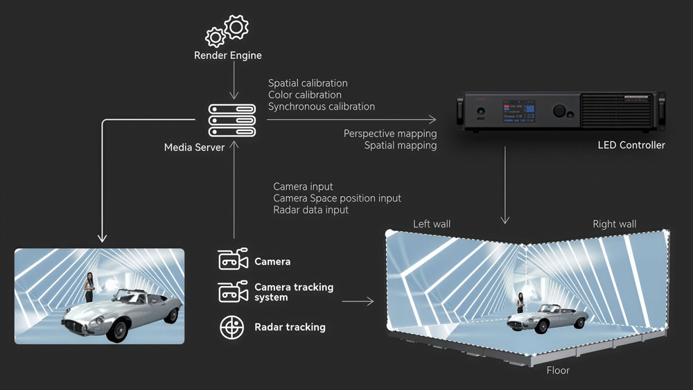 xR environments place higher operational demands on the controller. The LED wall works directly with cameras and rendering systems, so timing and consistency become critical.