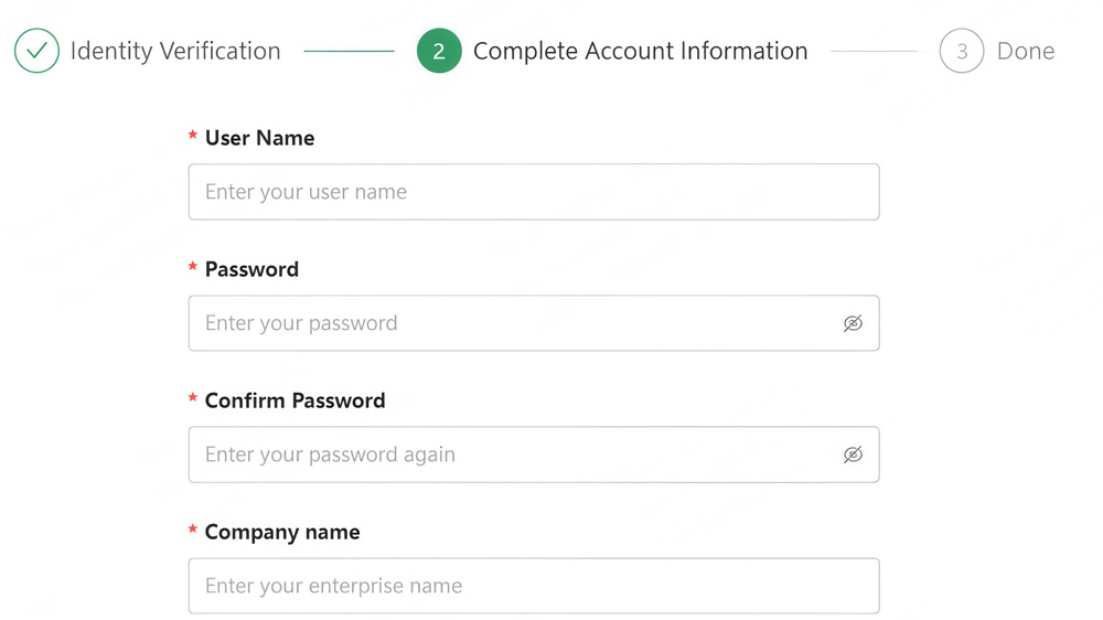 - Register using an email address or phone number and complete account information.